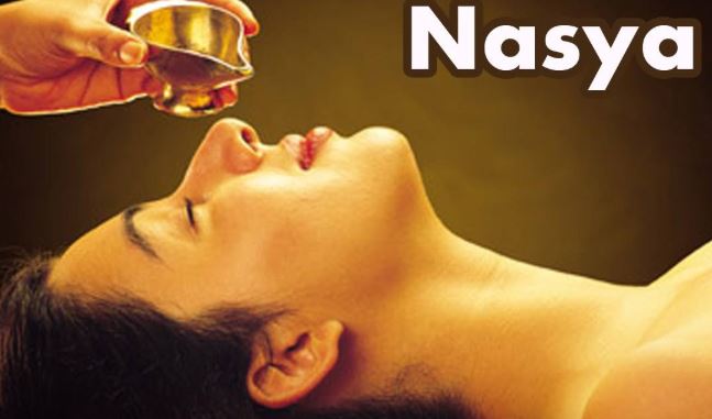Medicated drops placed through the nasal passages to clear channels above the neck, allowing therapeutic effects to reach the hair roots.